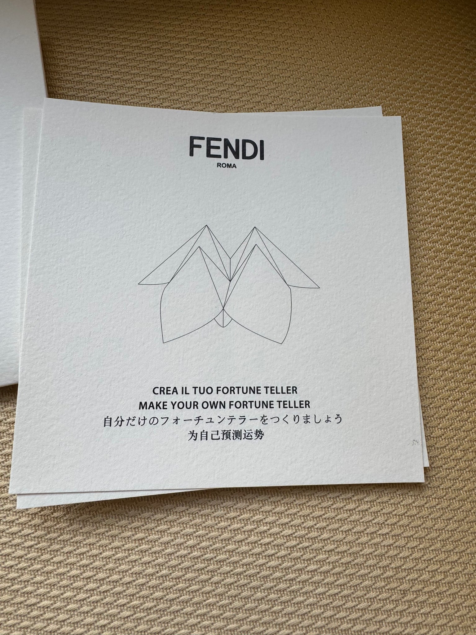 Fendi Fortune teller chatterbox paper kit to get answers (make your own)